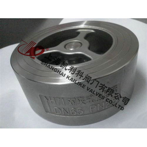 H71H、H71W對夾升降式止回閥該閥由閥體、閥瓣、彈簧等組成,水平或垂直安裝于管路系統,防止介質倒流,具有結構短、體積小、質量輕;閥瓣關閉快速,水錘壓力小;流道通暢,流體阻力小;動作靈敏,密封性能好。