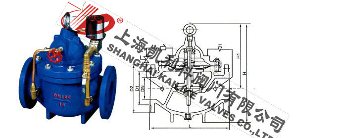 700X水泵控制閥當(dāng)水泵工作閥門(mén)向下游供水時(shí),電磁導(dǎo)閥全開(kāi),針閥調(diào)到適當(dāng)開(kāi)度,上游水經(jīng)過(guò)針閥,導(dǎo)閥,單向閥進(jìn)入主閥控制室,經(jīng)電磁導(dǎo)閥流出,此時(shí)主閥控制室壓力保持主閥處于合適開(kāi)度,保持下游正常供水。